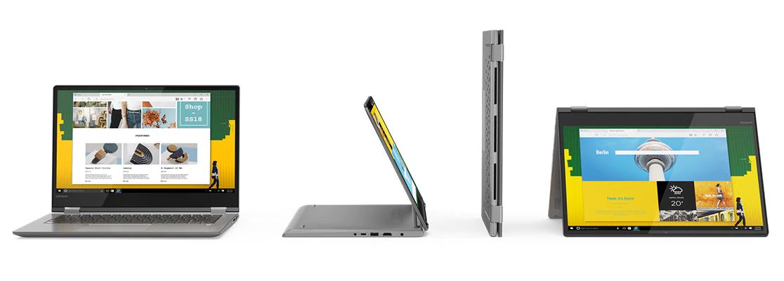 Per la parte entry level dell’offerta Lenovo, ecco Yoga 530. La gamma parte da 549 euro, ed offre (per questa cifra) CPU Pentium 4415U, 4 Gbyte di RAM e un SSD da 256 Gbyte. Lo schermo ha diagonale di 14” per tutti i modelli; in questo caso la risoluzione e di 1366×768 punti. Il peso è di 1,6 Kg, e l’autonomia indicata di 10 ore.