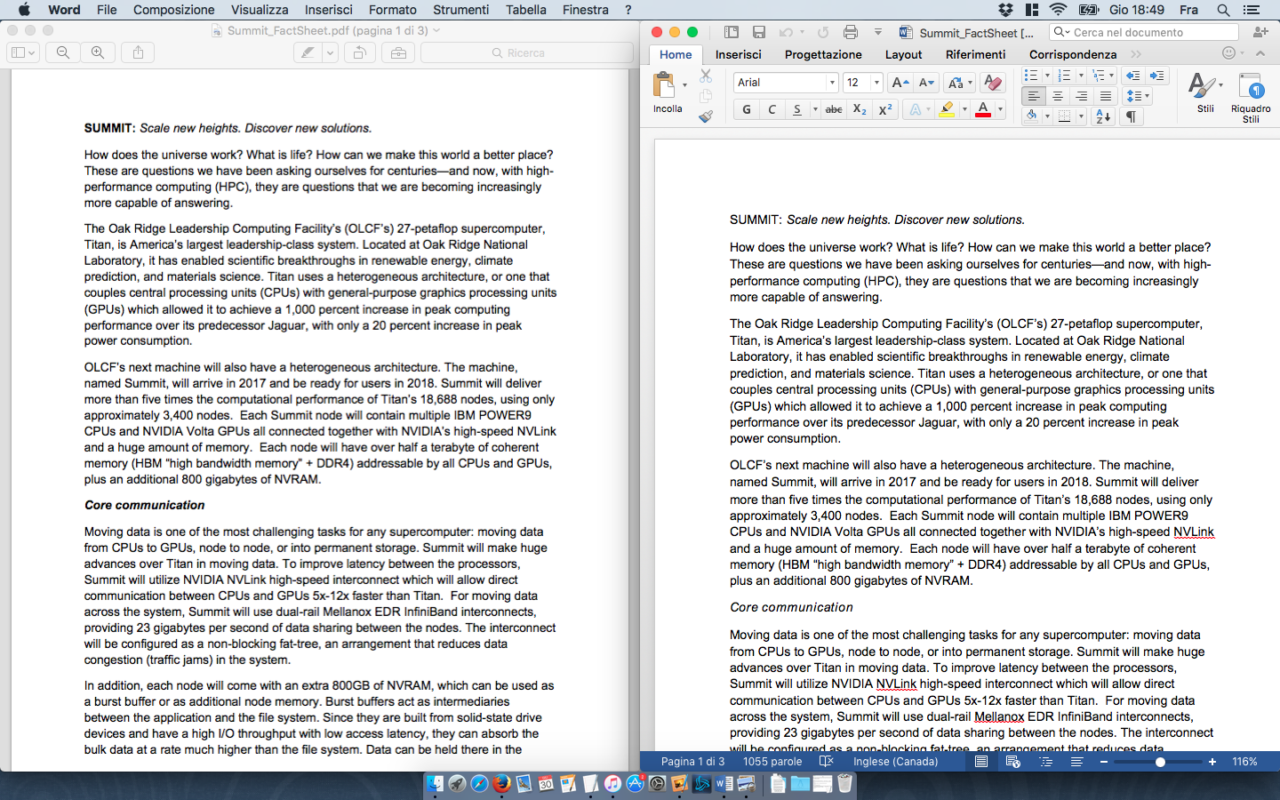 I documenti PDF sono tutto sommato pratici per la loro universalità ma spesso non abbastanza. Il formato nativo lo supportano tutti i sistemi operativi e quindi un file PDF è leggibile ovunque, però convertire in testo un PDF per usarlo in un’altra applicazione non è quasi mai comodo. Il buon vecchio copia-incolla dà risultati altalenanti e anche le applicazioni che “vedono” bene i PDF, come Anteprima, spesso non riescono ad aiutarci con una riproduzione fedele del testo “incollato”.