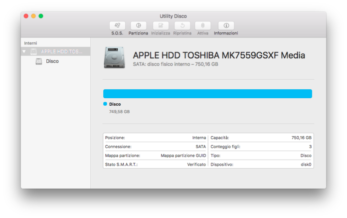 Con Utility Disco formattiamo il disco di sistema, usando un’opzione di cancellazione sicura se questo è un disco tradizionale a piatti rotanti. Per gli SSD l’opzione non esiste.