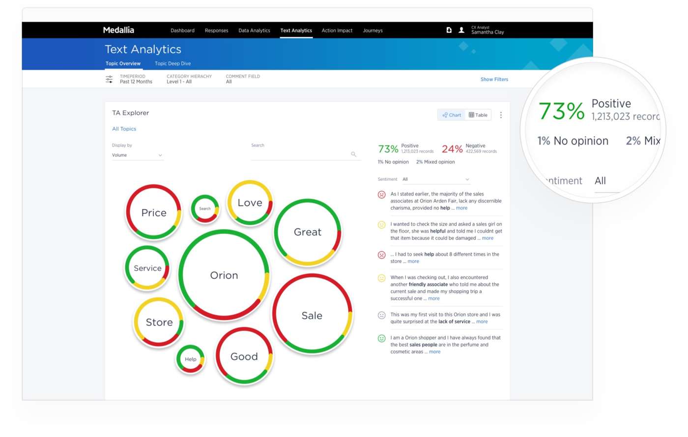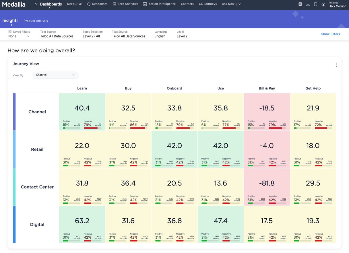 Questi feedback più tutte le informazioni catturate dagli altri touchpoint e sistemi dell’azienda confluiscono in tempo reale nelle dashboard di Medallia che sono personalizzate sulla base dei differenti ruoli e esigenze del cliente.