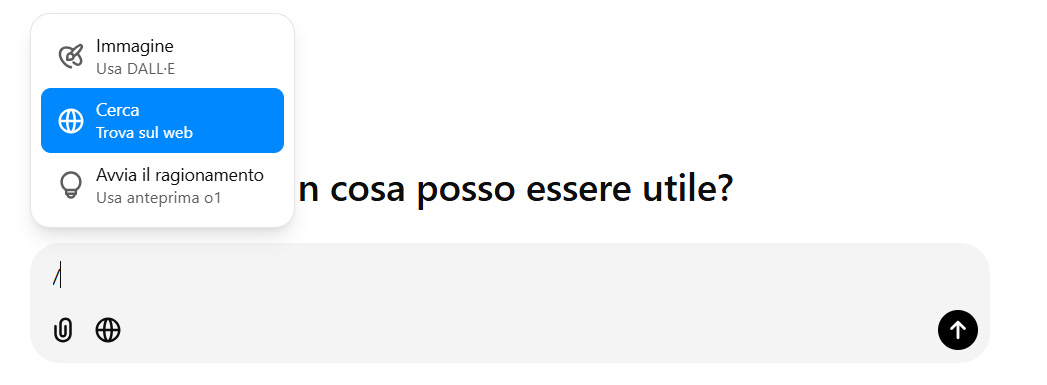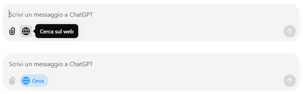 Ci sono altri due modi per avviare una ricerca con la funzione Cerca di ChatGPT.