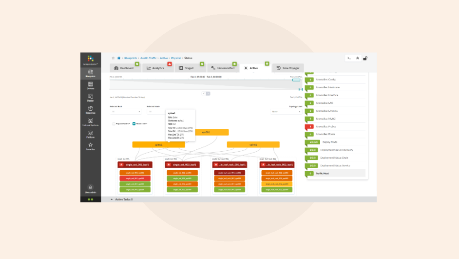 • Day 2+, gestione ongoing: i clienti hanno osservato che Apstra ha permesso di automatizzare molte attività operative manuali, aumentando al contempo la visibilità. Ora, hanno a disposizione “a single source of truth” per l’intero ambiente, anziché essere costretti a districarsi tra molteplici strumenti di gestione e troubleshooting specifici di ciascun vendor.