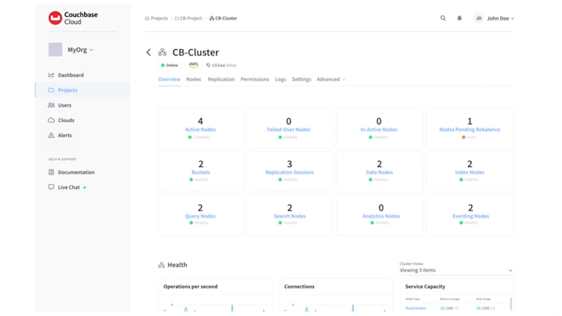 Couchbase Cloud è progettato per fornire deployment, ridimensionamento, ripristino degli errori e aggiornamenti automatizzati, monitoraggio e alert unificati, distribuzioni multi-cloud e supporto per cloud ibrido, dati protetti in flight e at rest per una sicurezza end-to-end.
