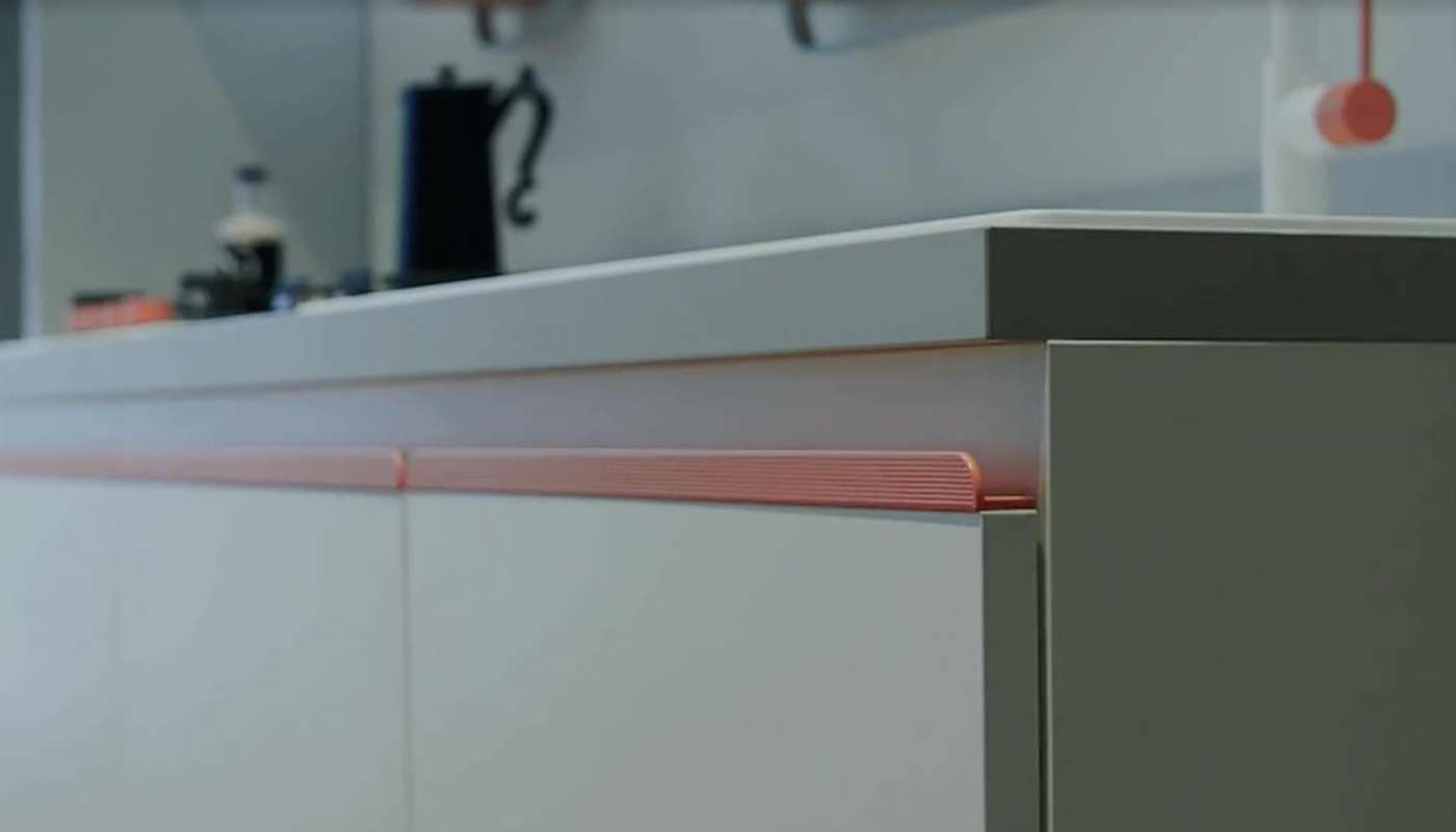 Caratteristica di Dandy Plus è la task bar (nell’immagine di apertura) la barra di profilato in alluminio posizionata sotto i pensili e fissata alla parete sulla quale si colloca il dispositivo altoparlante intelligente che, attraverso BTicino Living Now, controlla gli impianti. Come accessorio tecnologico, la cucina Scavolini integra anche un caricatore wireless.