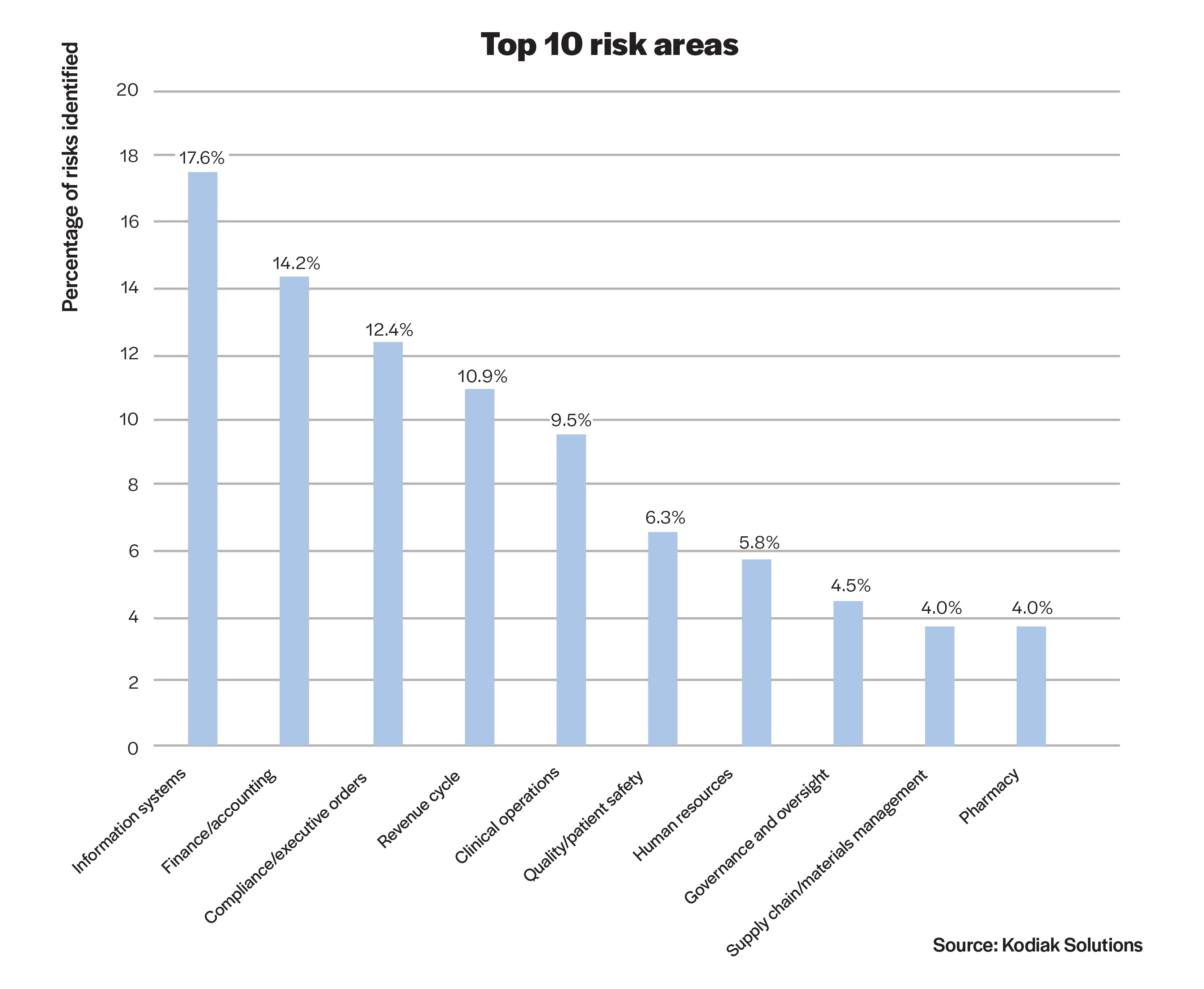 “As change accelerates, risks become harder to spot, requiring an ever-vigilant effort from internal auditors,” said Dan Yunker, senior vice president, risk and compliance, for Kodiak Solutions. “The pace of change healthcare is experiencing requires auditors to have an always-on, data-driven approach. Identifying these top risk areas provides a road map for internal auditors to make the most of shrinking resources.”