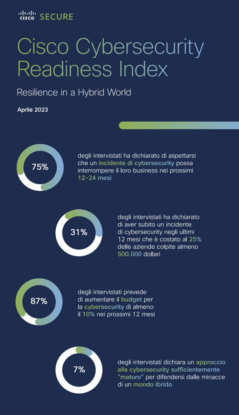 Sono questi i primi dati che emergono dal Cybersecurity Readiness Index 2023, un dettagliato rapporto realizzato per la prima volta da Cisco per misurare la preparazione e la resilienza delle aziende nei confronti della criminalità informatica.