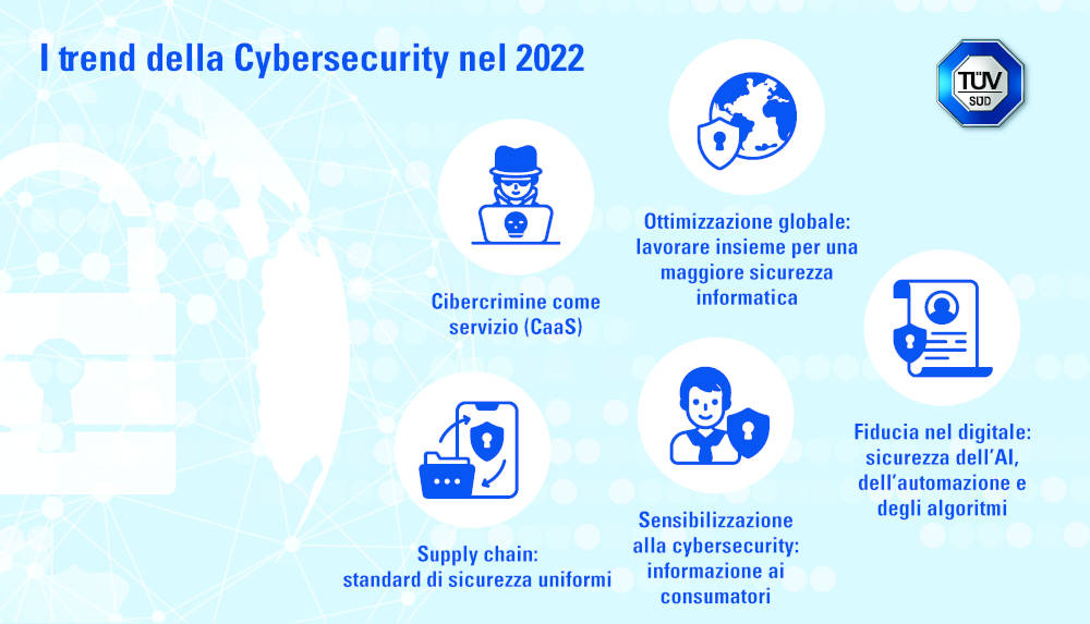 Sono cinque i principali trend del 2022 individuati dagli esperti di Tüv per quel che riguarda la cybersecurity.