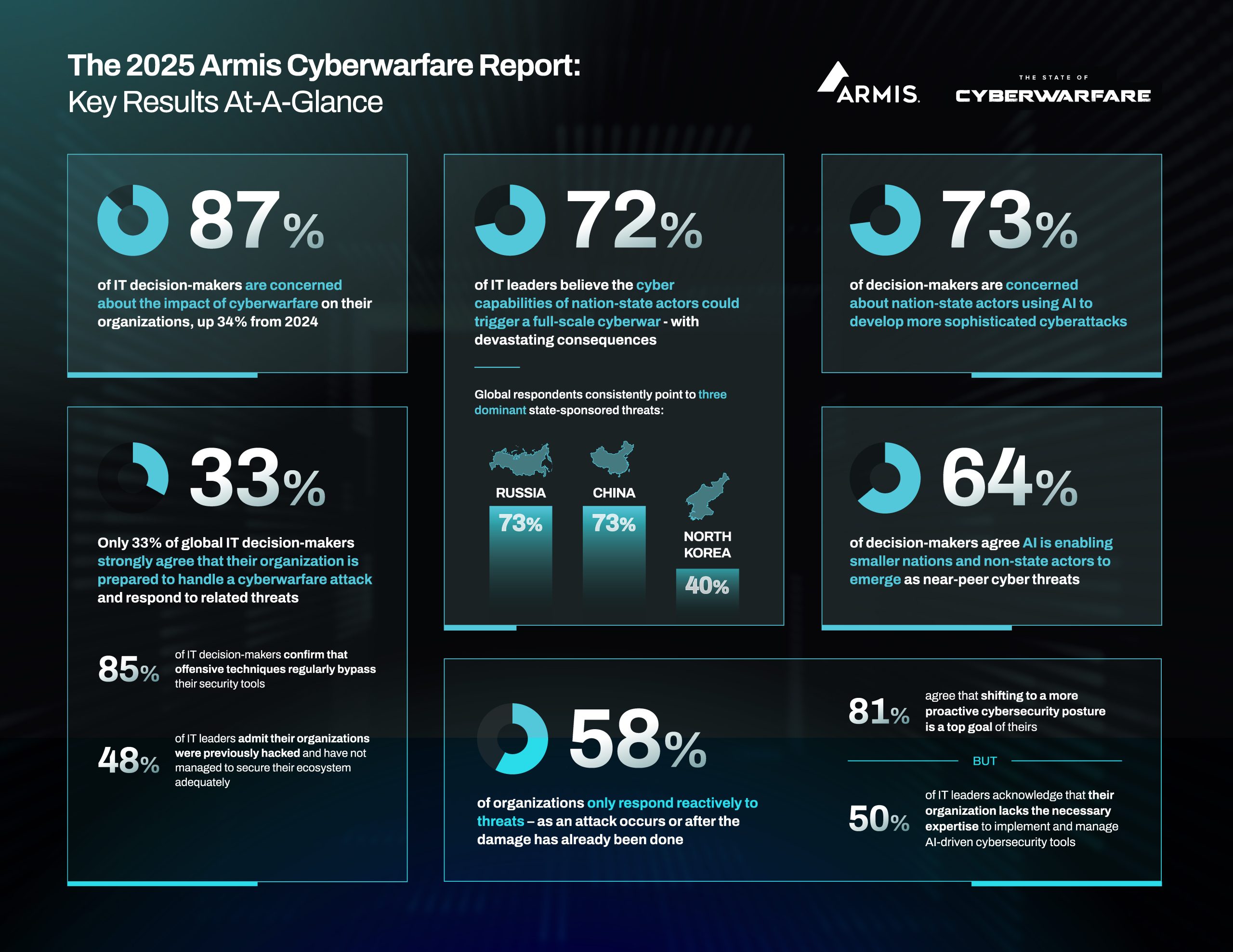 La ricerca ha rilevato che l’intensificarsi dell’instabilità geopolitica e i rapidi progressi dell’IA stanno alimentando una nuova pericolosa era di guerra informatica. Armis invita le organizzazioni italiane a rafforzare le proprie operazioni di cybersecurity per mitigare proattivamente questo rischio.