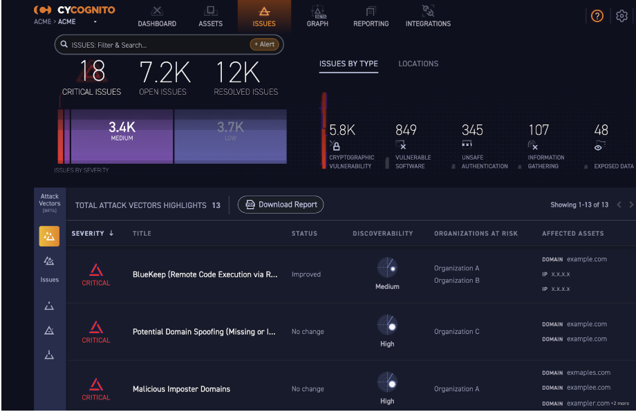 Automatizzando i processi di gestione della superficie di attacco precedentemente manuali, e integrandosi con asset management, reporting, security operation, gestione del rischio e altri flussi di lavoro, CyCognito consente alle imprese di assumere il pieno controllo della loro attack surface.