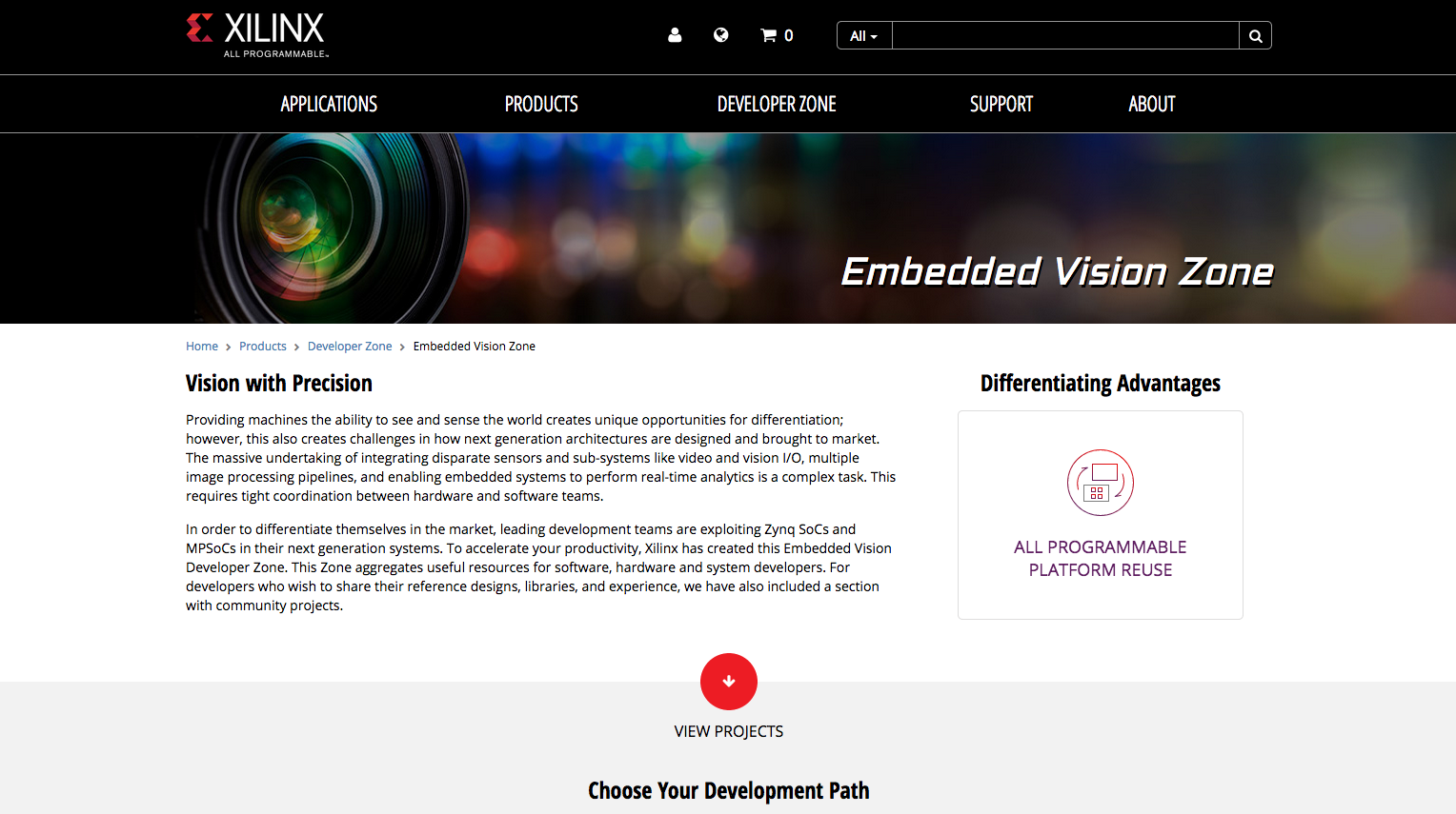 Al centro dell’Embedded Vision Developer Zone messa a punto dal produttore californiano, un insieme completo di risorse ingegneristiche costituito da librerie ottimizzate per lo sviluppo del software, blocchi di proprietà intellettuale sulla visione artificiale per gli sviluppatori hardware, progetti e tutorial forniti da Xilinx, dai membri dello Xilinx Alliance Program e dagli sviluppatori della comunità.