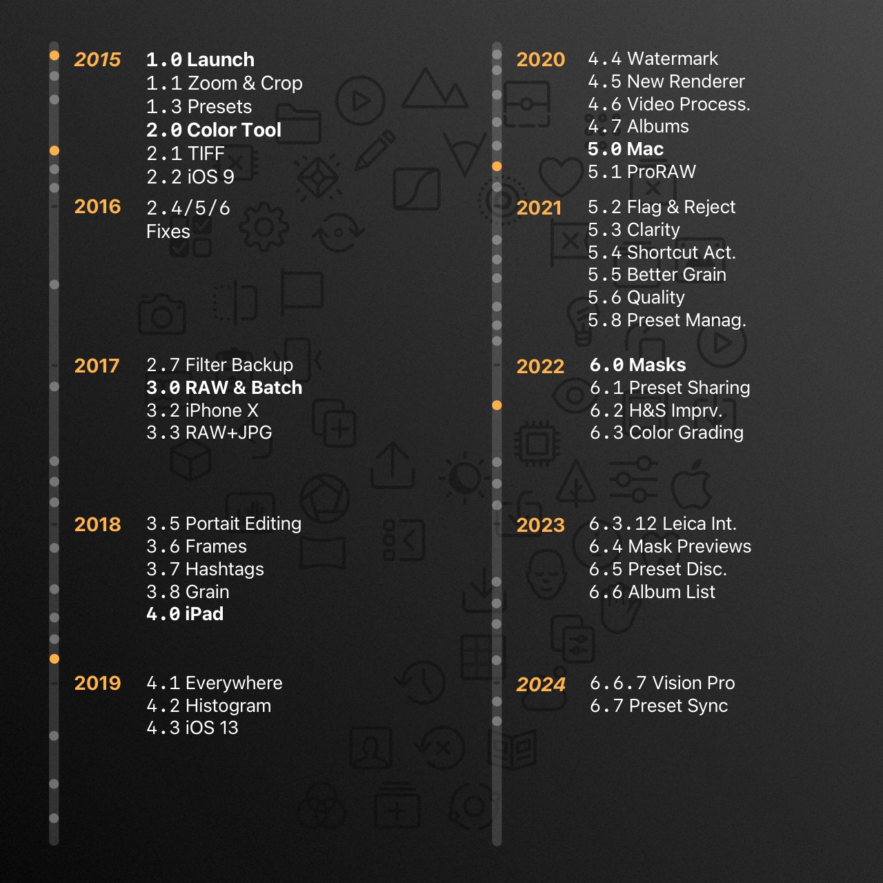 Per quanto riguarda i piani futuri, il team ha condiviso di aver iniziato a ricostruire l’image processing engine già ben oltre un anno fa. È la terza volta che questo lavoro viene fatto: ad esempio, nel 2019 il team ha trascorso l’intero anno a lavorare su un nuovo motore di rendering che ha permesso il supporto per iPad, macOS e un’efficiente elaborazione delle immagini RAW. Ogni volta, il lavoro poggia sulla base del prezioso feedback degli utenti e degli insegnamenti tratti dai limiti attuali, e ogni volta ha lo scopo di inaugurare una nuova era di possibilità.