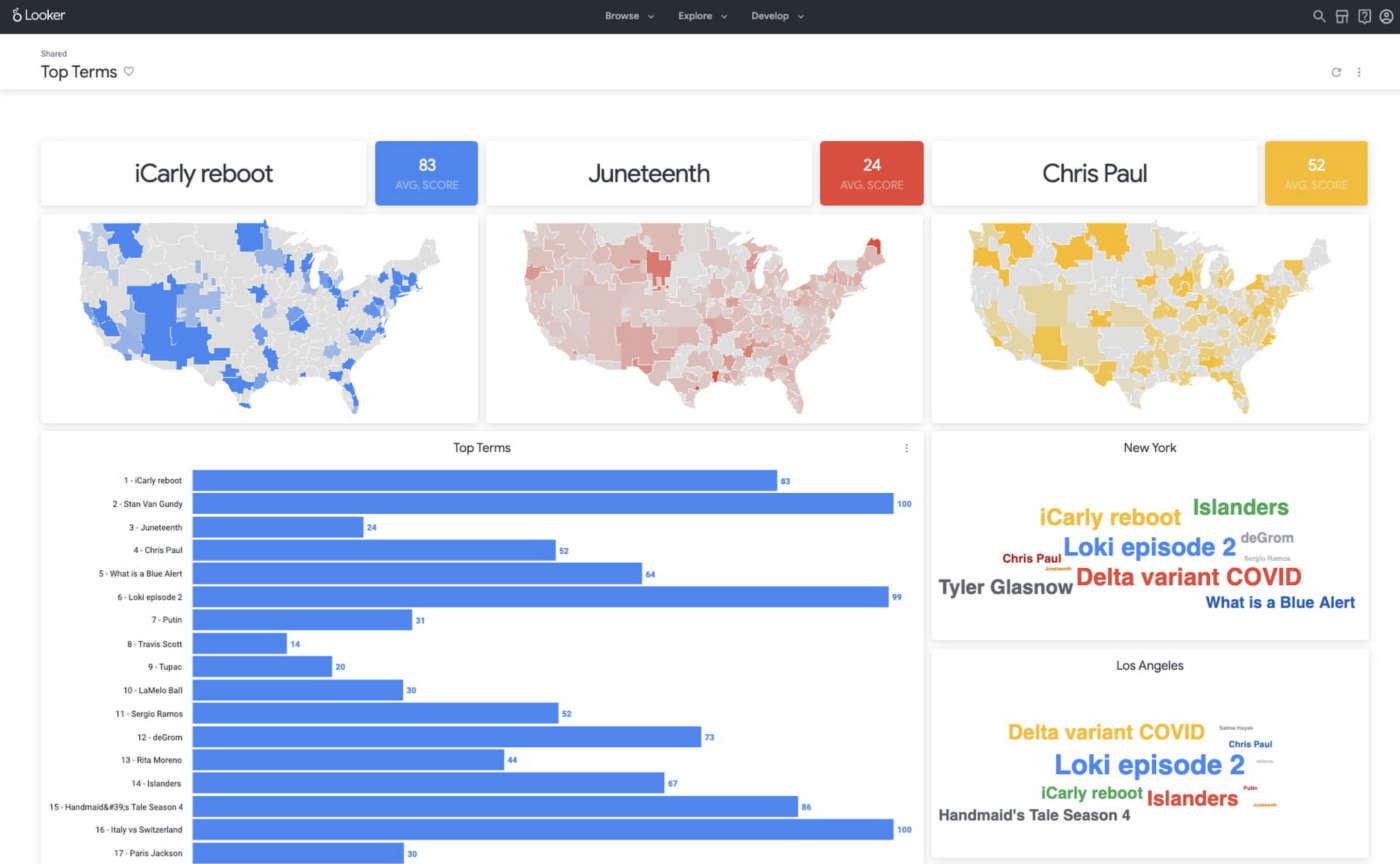 Questo dataset BigQuery, che sarà presto disponibile anche in Analytics Hub, permette agli utenti di misurare l’interesse per un particolare argomento o termine di ricerca attraverso Google Search. Per ora, da tutti gli Stati Uniti, fino al livello della città.