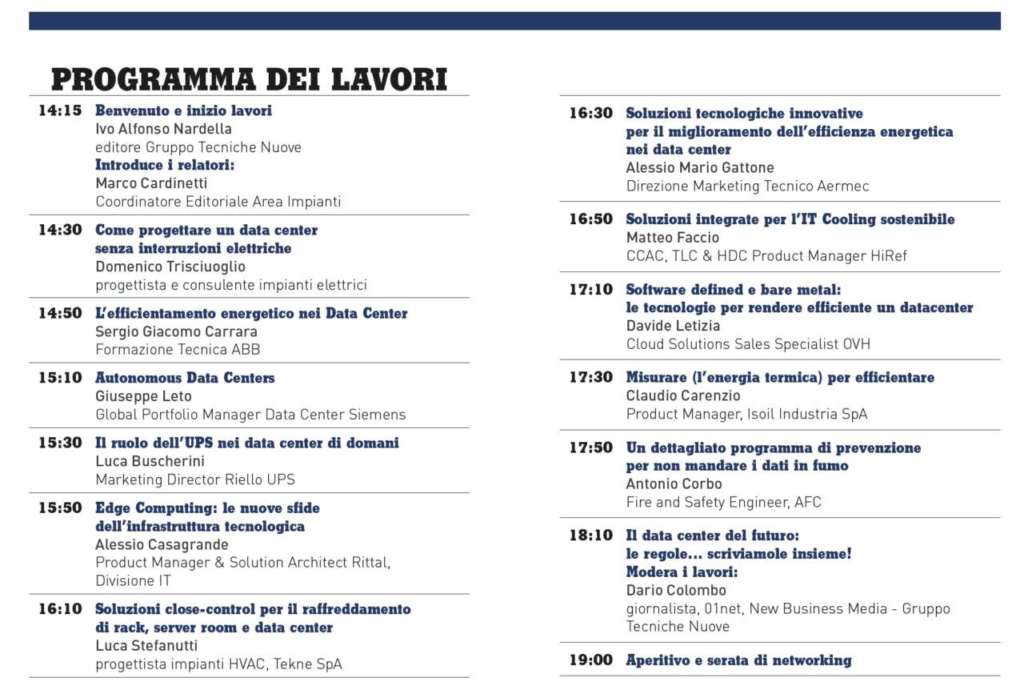 A loro beneficio, in seguito agli interventi dei relatori, redarremo insieme ai relatori il documento che identifica gli elementi centrali di un data center a prova di futuro.