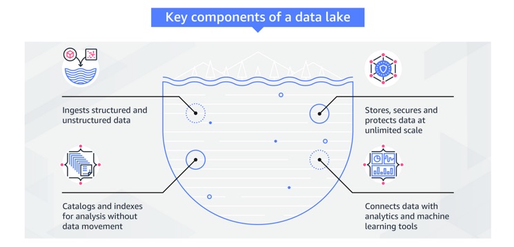 I data lake invece permettono di importare qualsiasi quantità di dati in qualsiasi formato, anche in tempo reale, perché non esiste uno schema predefinito. È possibile raccogliere dati da più fonti e spostarli nel data lake nel loro formato originale e creare collegamenti tra informazioni che potrebbero essere etichettate in modo diverso ma che rappresentano la stessa cosa.
