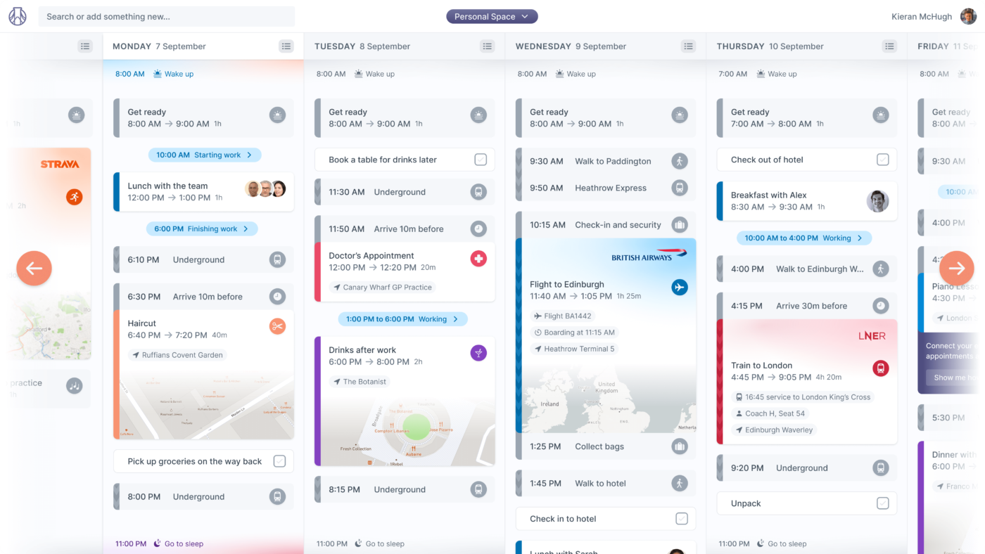 Oltre alla gestione degli eventi, offre strumenti per gestire i task, il tempo riservato, i viaggi e altri elementi che servono per pianificare al meglio il proprio tempo.