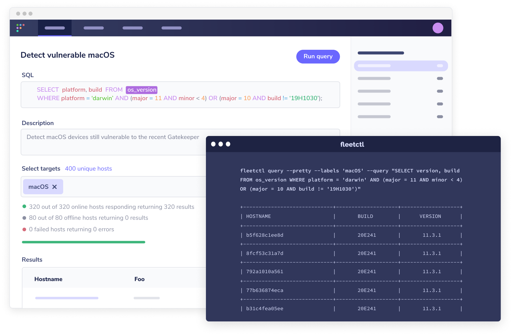Infine, installare osquery sull’intero parco dispositivi può essere impegnativo. Fleet fornisce un semplice strumento a riga di comando per installare l’agent osquery senza dover combattere con i certificati e le impostazioni di configurazione.