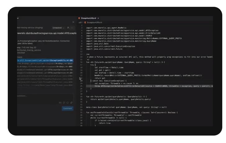 New Relic CodeStream è una soluzione di osservabilità che collega i dati di telemetria delle applicazioni direttamente al codice rilevante all’interno dell’IDE, in modo che gli sviluppatori possano monitorare, collaborare e risolvere i problemi in modo più veloce e semplice.