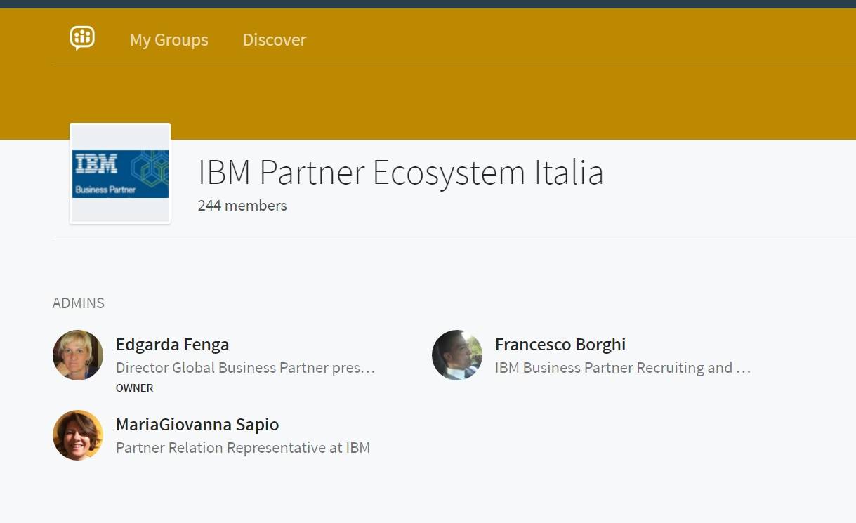 Concretamente si tratta di una pagina, non casualmente denominata IBM Partner Ecosystem Italia, che vede come amministratori la stessa Edgarda Fenga, affiancata da Francesco Borghi, IBM Business Partner Recruiting and Development Manager, e Maria Giovanna Sapio, Partner Relation Representative, e alla quale, a poche ore dall’apertura, hanno già aderito circa 250 membri.
