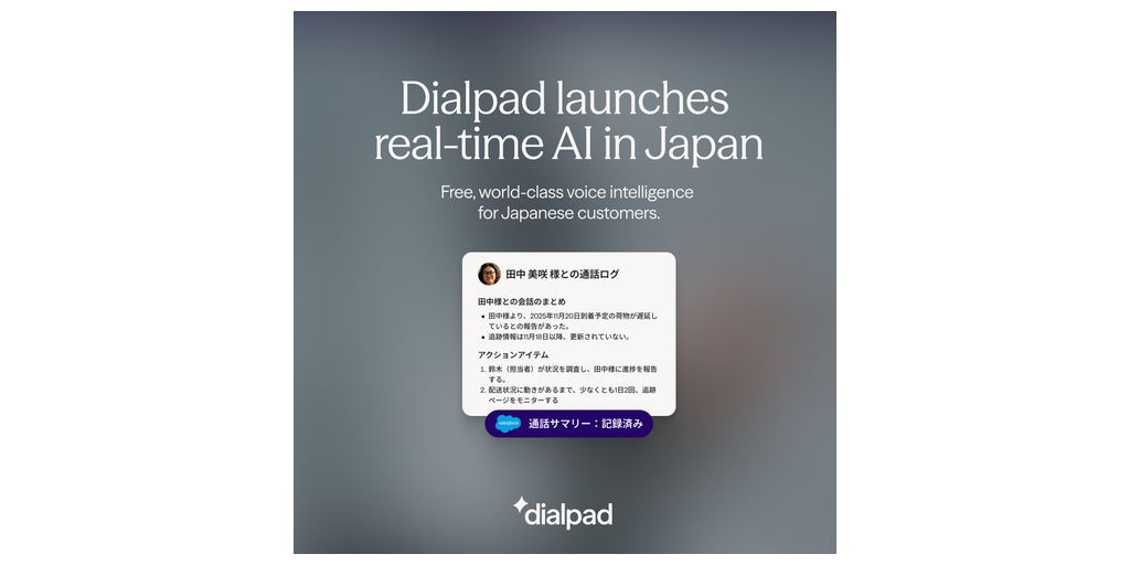This launch includes real-time Japanese transcription, AI Recaps that include summaries with automatic action items, and real-time coaching features to assist sales and support teams with customer interaction - all built on Dialpad’s proprietary in-house models designed specifically for business communication.