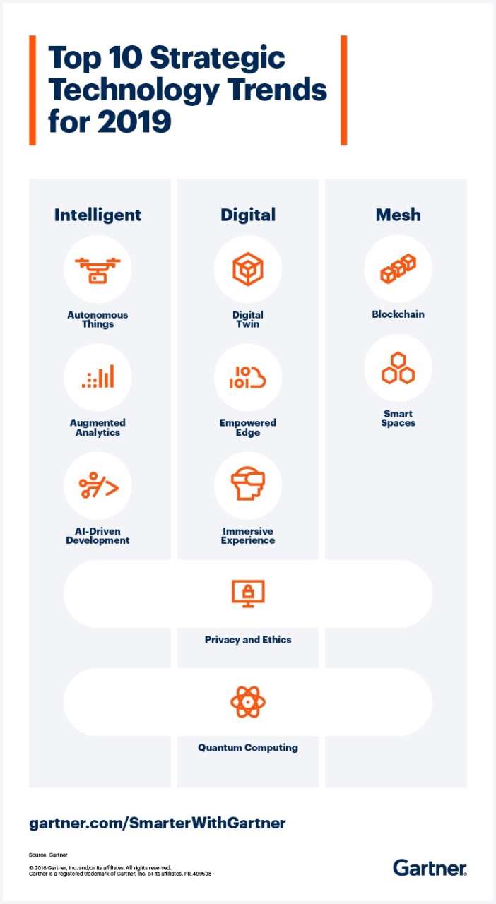 I contenuti sono pubblicati nel report Gartner intitolato Top 10 Strategic Technology Trends for 2019.