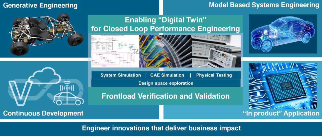 Fare Model Based System Engineering, significaì abilitare il connected engineering tra più domini: meccatronica, elettronico, elettrico, software. Significa Passare da digital twin geometrici a digital twins funzionali. Azioni che servono per validare modelli di guida autonoma.La validazione virtuale di sistemi driverless, per esempio richiede model based System engineering integrato, ricorso a HPC massivo con dati in tempo reale.