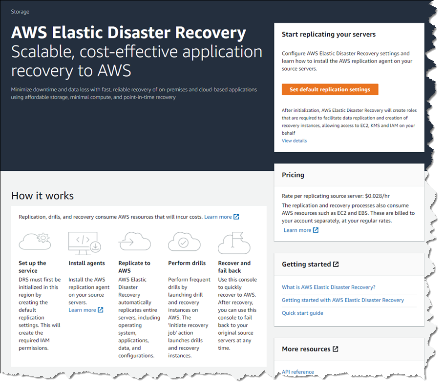 Utilizzando un agente da installare sui propri server, Aws Elastic Disaster Recovery replica in modo sicuro i dati in una staging area subnet in una region selezionata nel proprio account Aws. La staging area subnet riduce i costi, utilizzando uno storage conveniente e risorse di calcolo minime.