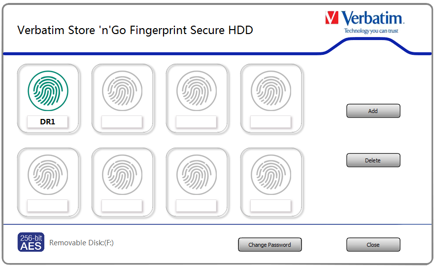 VerbatimIl sistema di riconoscimento delle impronte digitali è integrato nel nuovo disco rigido Verbatim e consente l’accesso fino a otto utenti autorizzati e a un amministratore. Una volta impostati, gli utenti possono bloccare e sbloccare il dispositivo in meno di un secondo, semplicemente utilizzando l’impronta digitale registrata.