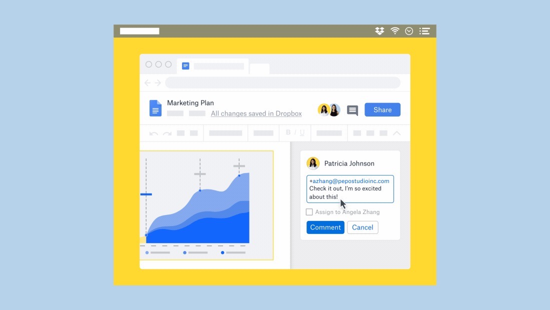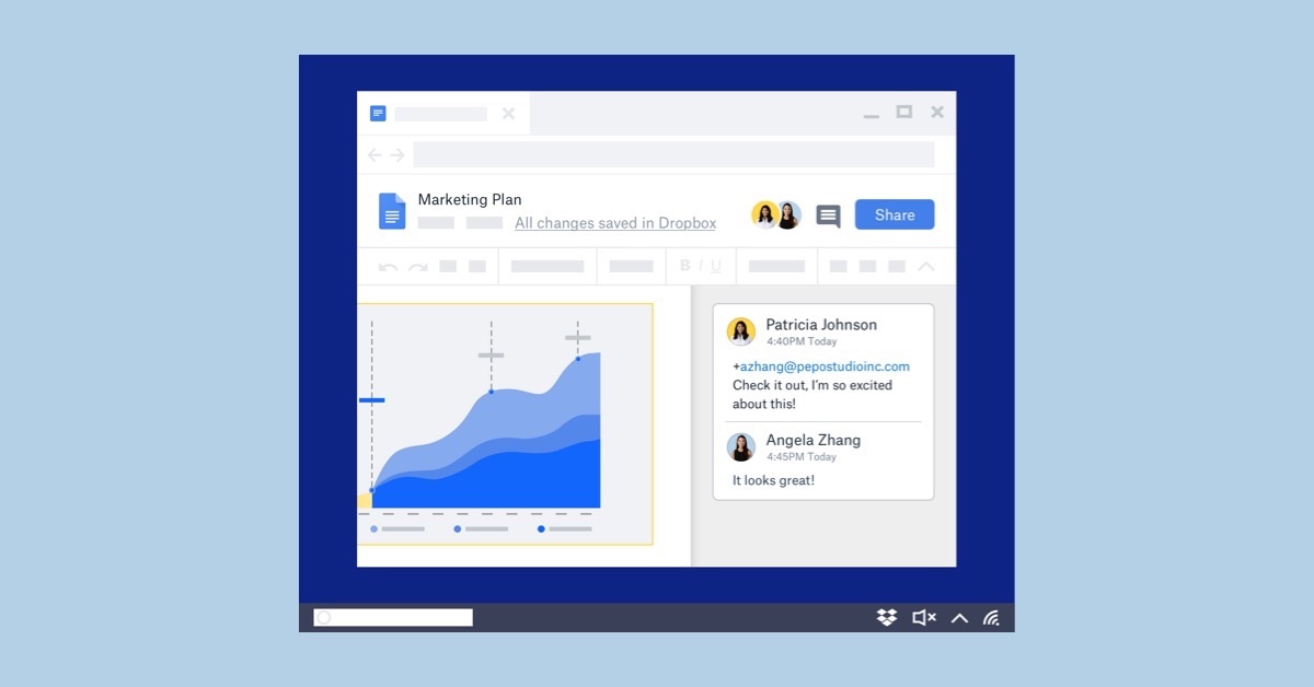 I commenti aggiunti ai documenti Google verranno visualizzati nelle notifiche di Dropbox. In tal modo l’utente può rimanere sempre aggiornato sul lavoro, senza dover continuamente controllare su più posizioni.