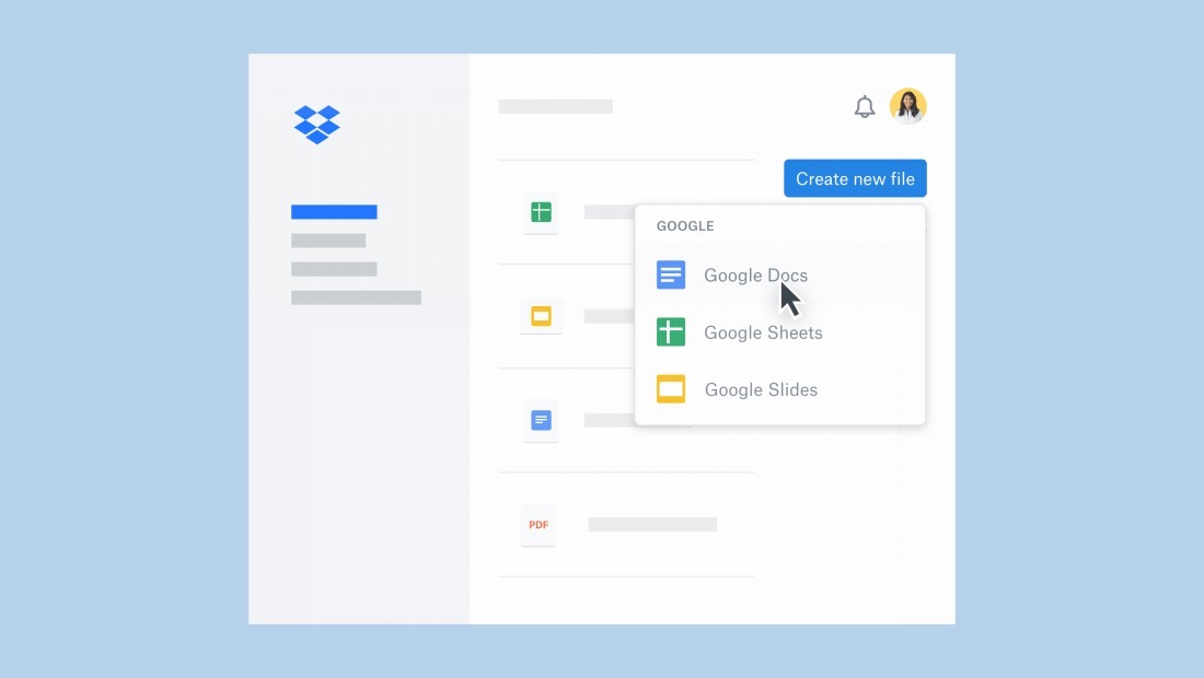 L’utente ha inoltre la possibilità di creare un nuovo documento, foglio di lavoro o presentazione condiviso, direttamente da dropbox.com o dalle app Dropbox per Windows e Mac. Nonché di archiviarlo in Dropbox. Quando un utente apre un documento di questo tipo, viene reindirizzato direttamente al familiare editor di Google, che si avvia direttamente su dropbox.com.