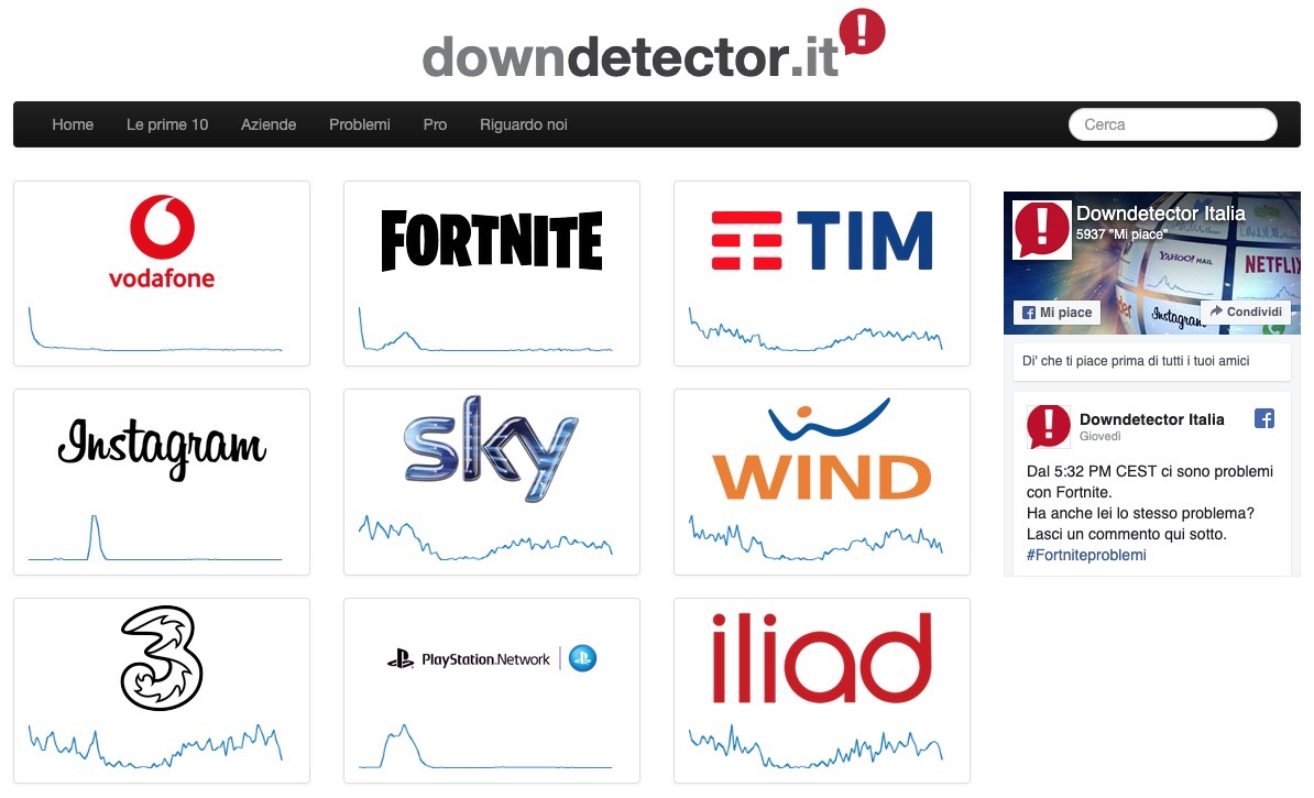 DowndetectorDowndetector è uno strumento online, disponibile a questo link, che può venire in aiuto quando abbiamo bisogno di sapere se anche altri utenti, oltre a noi, stanno sperimentando un determinato disservizio.