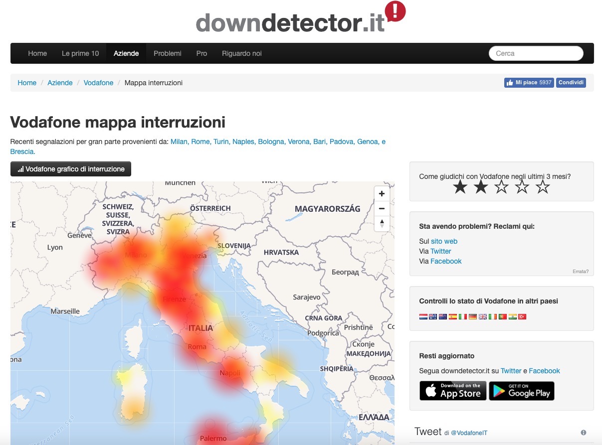 Proprio di recente, utenti in diverse zone d’Italia hanno registrato dei “down” della rete Vodafone, che hanno riguardato la telefonia, sia fissa che mobile, così come la connessione a Internet.