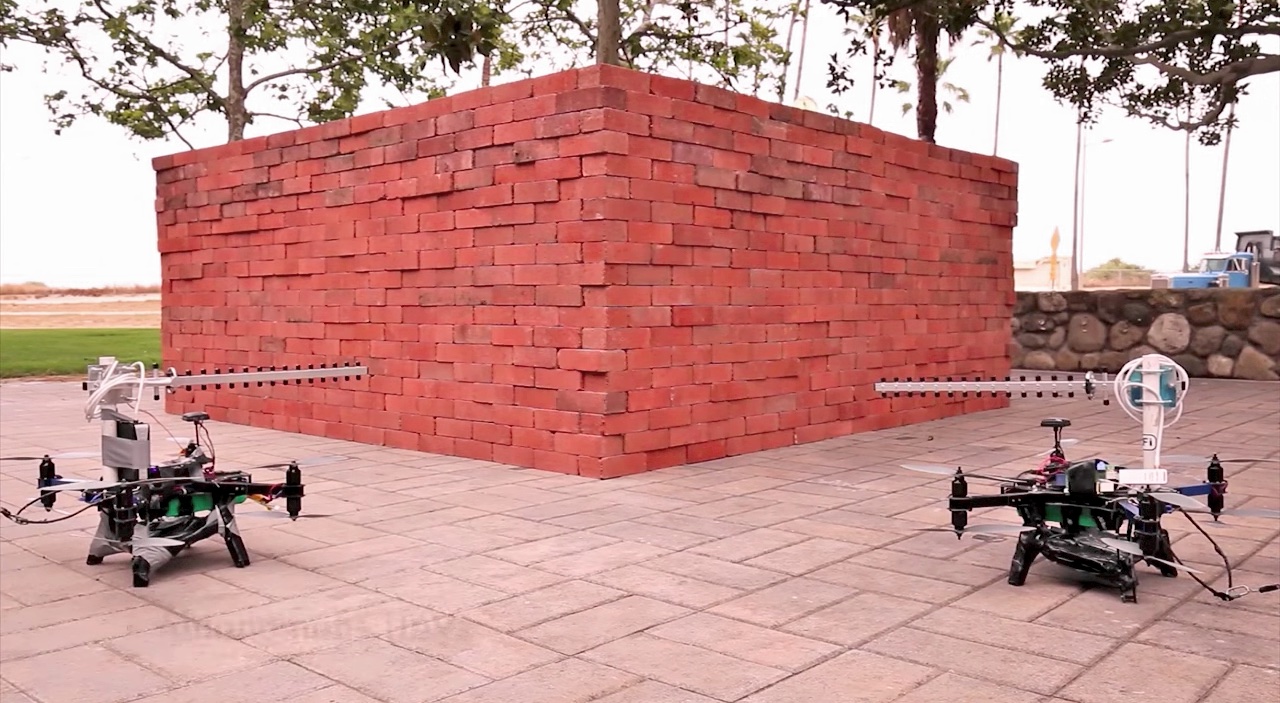 Uno dei droni emette un segnale WiFi e l’altro ne misura la potenza in ricezione, che è ovviamente influenzata da ciò che si trova fra i droni, all’interno dei muri.