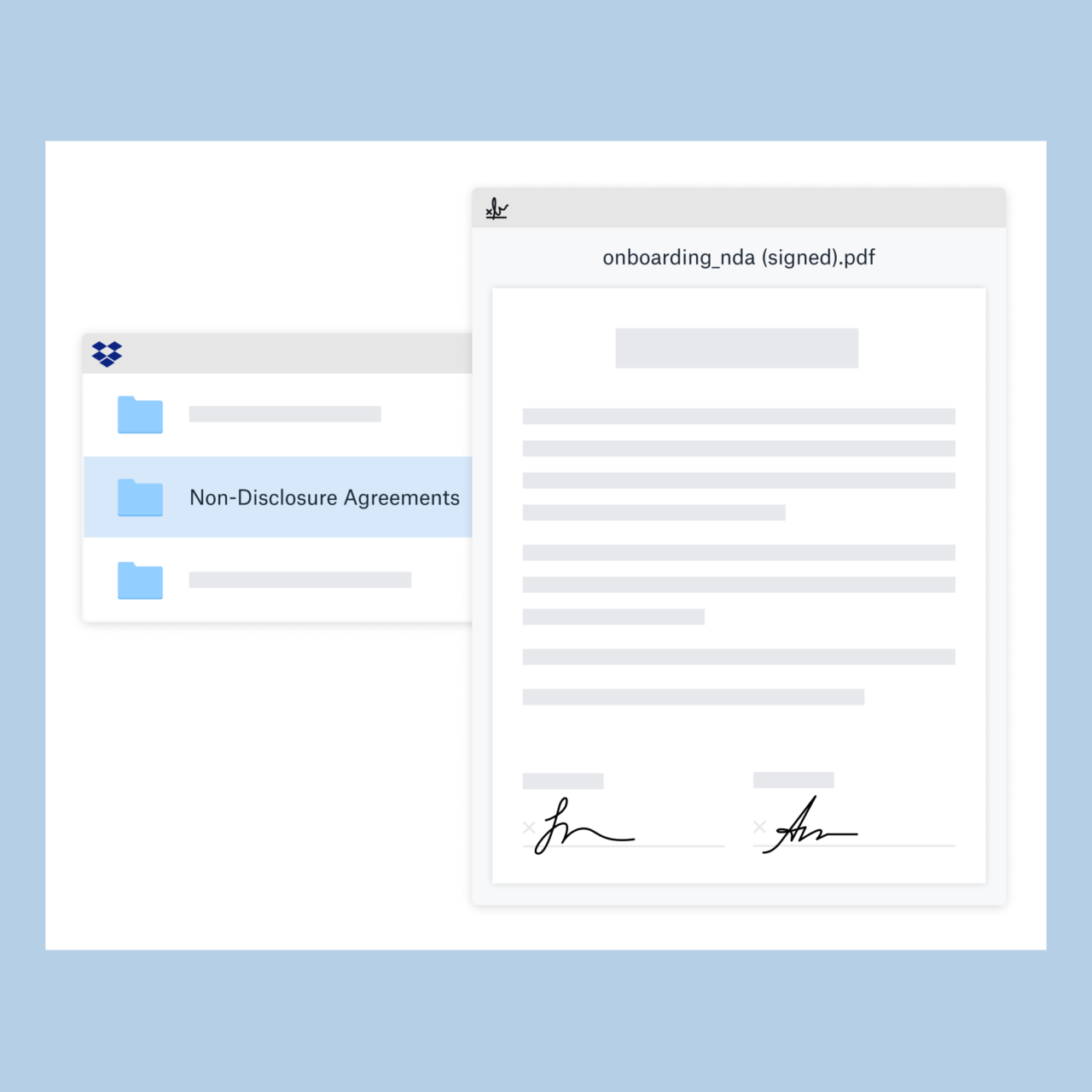 La soluzione eSignature di HelloSign e Dropbox semplifica l’esperienza di auto-firma e richiesta di firma, eliminando molti passaggi manuali in modo da completare i contratti più rapidamente.