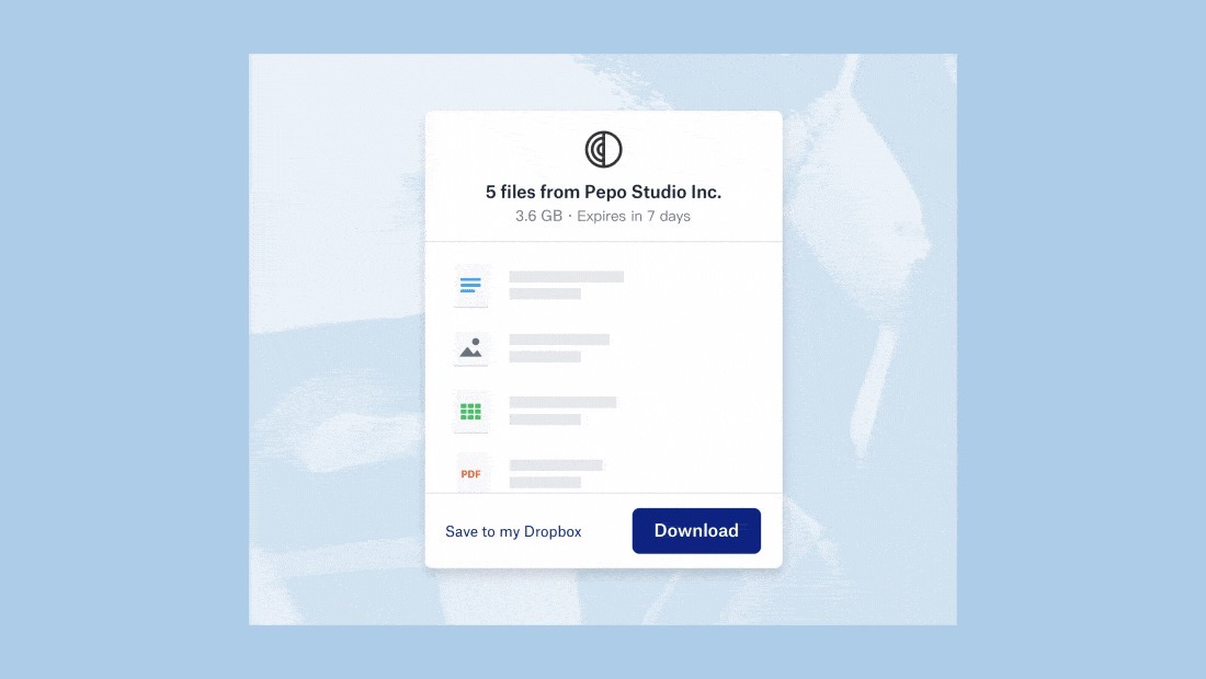 Dropbox Transfer consente inoltre di creare una pagina di download personalizzata per la propria azienda, in modo da offrire un look professionale. È possibile cambiare il colore di sfondo e l’artwork, oppure caricare una propria immagine, così come brandizzare la pagina con il logo della propria azienda, per presentare una funzionalità di file transfer personalizzata.