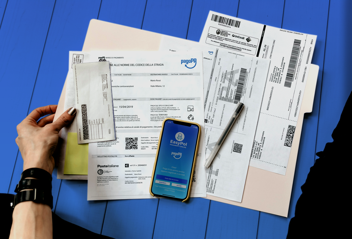Con EasyPol è possibile effettuare il pagamento di multe, tributi, quote associative, tari, tasi, ticket Asl, bollo auto, ordini professionali, tasse universitarie e tutte le altre tipologie di avvisi PagoPA tramite carte di credito, carte di debito e carte prepagate.