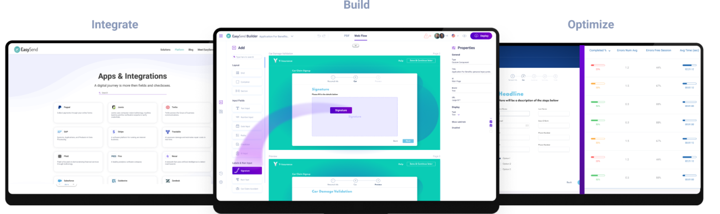 EasySend aiuta poi a semplificare workflow complessi, ad esempio che coinvolgono più persone o regole e condizioni multiple, e si integra con sistemi back-end e servizi di terze parti.