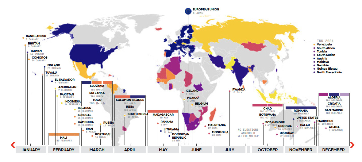 Elemento di disturbo per la democrazia attraverso azioni che prendono di mira le elezioni globali: con oltre 40 elezioni democratiche in programma per il 2024, gli avversari degli Stati nazione e appartenenti all’eCrime avranno a disposizione numerose opportunità per compromettere il processo elettorale o influenzare l’opinione degli elettori. È molto probabile che gli attori degli Stati nazione come Cina, Russia e Iran condurranno campagne di disinformazione o mala informazione per creare disordine sullo sfondo di conflitti geo-politici ed elezioni globali.
