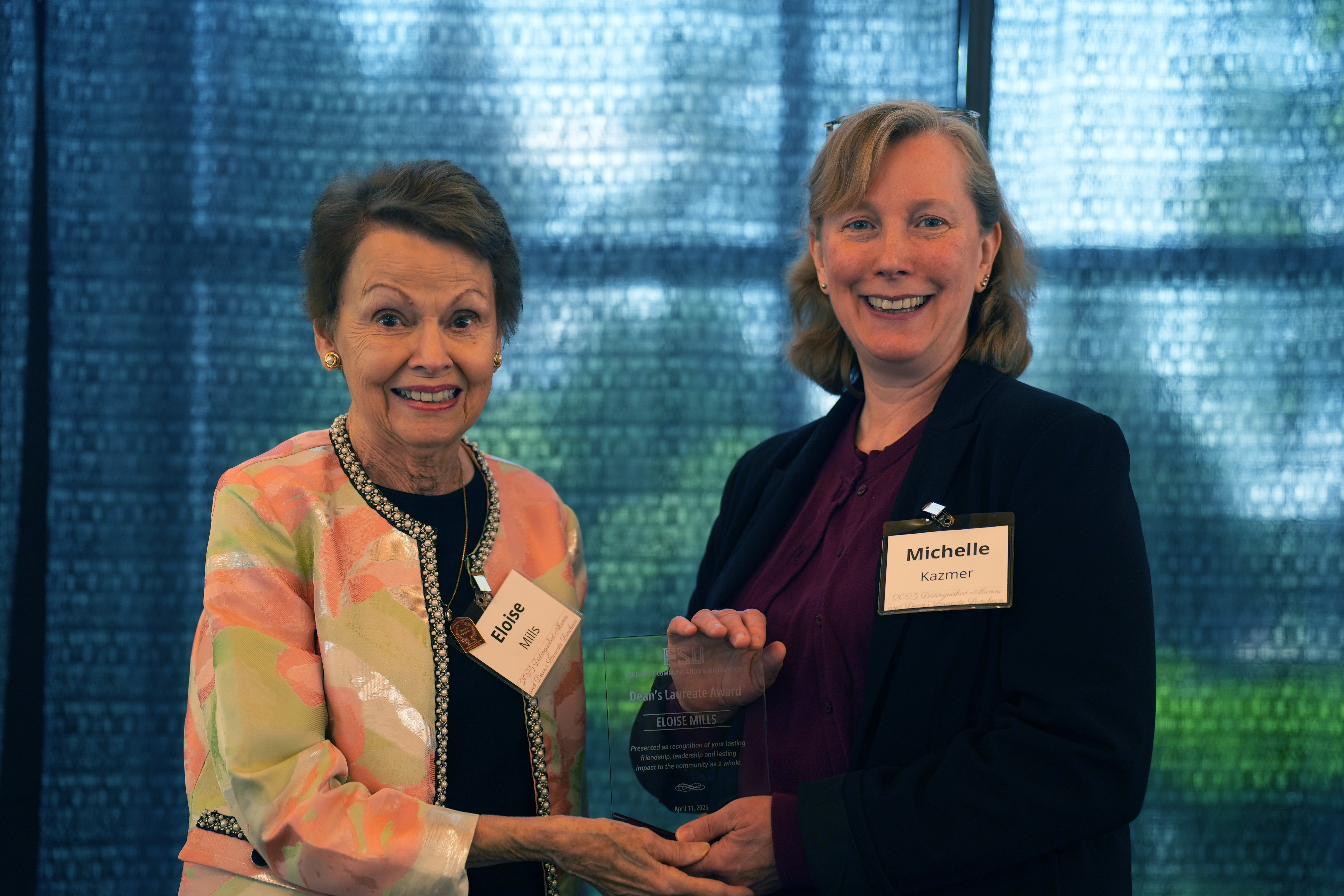 “I have long admired Eloise Mills as a professional and been grateful for her as an alumna,” said Michelle Kazmer, dean of the College of Communication and Information. “She has truly embodied the vision and mission of the FSU College of Communication and Information and has been a wonderful partner and supporter. Our students, our programs, and the world are better because of Eloise Mills, and I'm pleased to honor her as one of the first Dean's Laureates.”