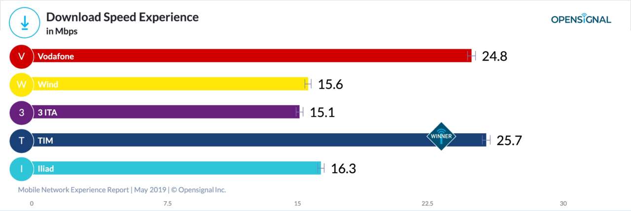 Tim ha vinto quattro dei cinque “primati” che Opensignal assegna nel report, a volte con un testa a testa con Vodafone e con una buona affermazione nel test Download Speed Experience.