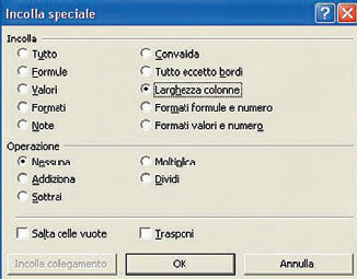 l’opzione espressamente prevista dalla funzione Incolla speciale. Eseguire normalmente
