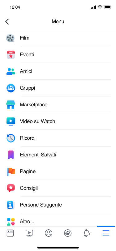 Per provare Film bisogna accedere al menu generale di Facebook e selezionare l’icona con l’immagine di una bobina cinematografica.