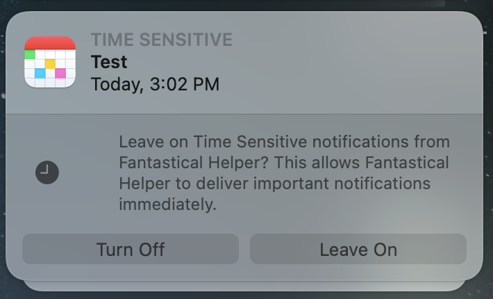 Così, è stato aggiunto il supporto completo per le notifiche time sensitive in Fantastical per Mac 3.5. In questo modo non c’è da preoccuparsi di perdere gli avvisi di eventi e attività importanti.