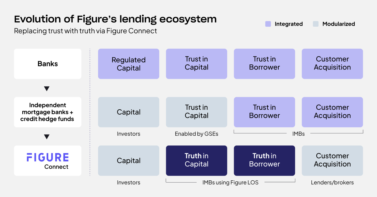 This is the latest development for Figure Connect, Figure’s transformative marketplace for private credit loans, making it easier for loan origination partners to scale their businesses. Figure Connect’s key advantages include attractive warehouse lines to manage cash flow, hedging to manage market risk, and modern infrastructure that automates loan sales and deliveries, all on a public, transparent blockchain. With Figure Connect, partners can also use the marketplace infrastructure for price discovery by putting out pools of loans for bidding. As a result, over 40% of Figure’s December 2024 volume went through Figure Connect, which launched in June 2024. Figure Connect is available to all participants in Figure’s lending ecosystem.