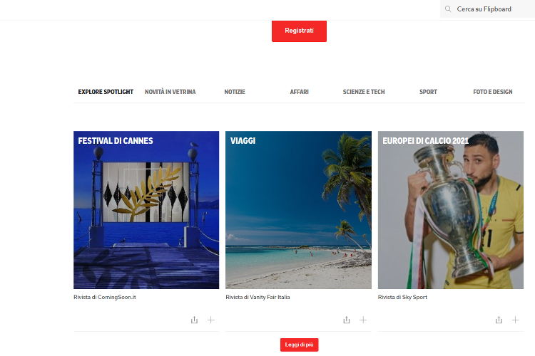 Una volta iscritti al servizio, gratuito con inserimento di pubblicità, si scelgono le tematiche e le riviste di interesse. A quel punto, entra in azione l’algoritmo Flipboard per costruire la rivista personalizzata. Immancabilmente, pronta anche per la condivisione, a partire dagli utenti della stessa piattaforma.