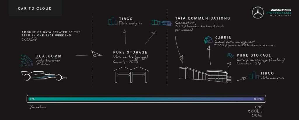 Dal canto suo Mercedes è un’azienda da sempre data-driven, all’avanguardia nell’adozione di nuove tecnologie che possono far crescere il proprio business. L’innovazione in azienda è costante, tanto più nel team che la rappresenta in Formula 1. Soprattutto, è fondamentale la fiducia di avere sempre a disposizione le informazioni critiche per questa innovazione, e di poterle sempre recuperare nel caso in cui qualcosa vada storto.