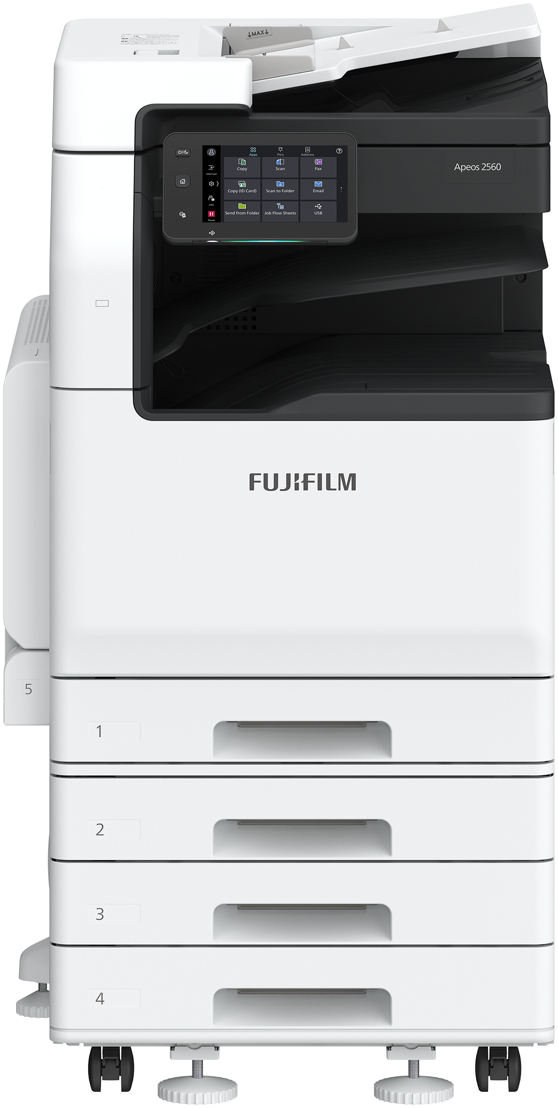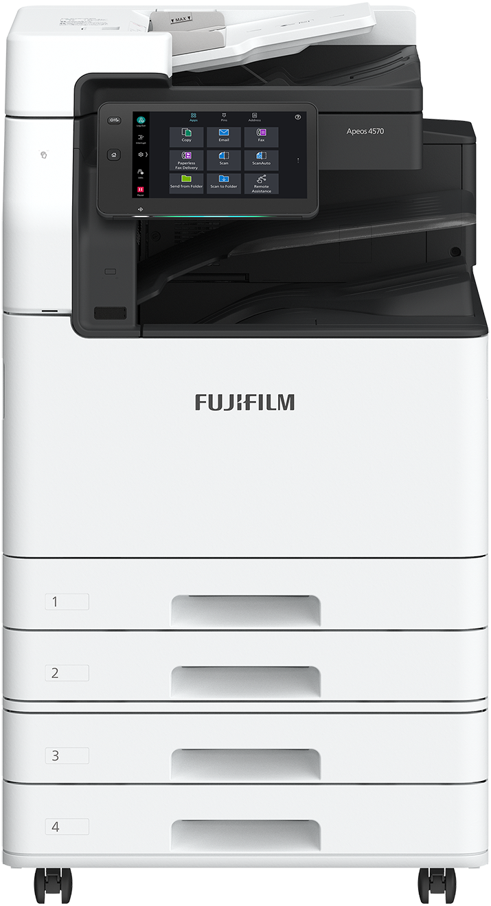 Questa serie comprende due modelli A3: Apeos 5570 e Apeos 4570, in grado di stampare rispettivamente fino a 55 e 45 pagine A4 monocromatiche al minuto. Entrambi eseguono anche scansioni a colori a 80 pagine A4 al minuto in modalità simplex e a 160 pagine al minuto in modalità duplex, in un unico passaggio. I modelli della serie sono in grado di gestire grammature di carta da 52 a 300 g/m² e formati da SRA3 fino al formato cartolina (100 x 148 mm), con un’opzione di stampa banner di 320 x 1.200 mm. La serie è inoltre dotata di un pannello a sfioramento a colori da 10,1 pollici che ne facilita l’utilizzo.