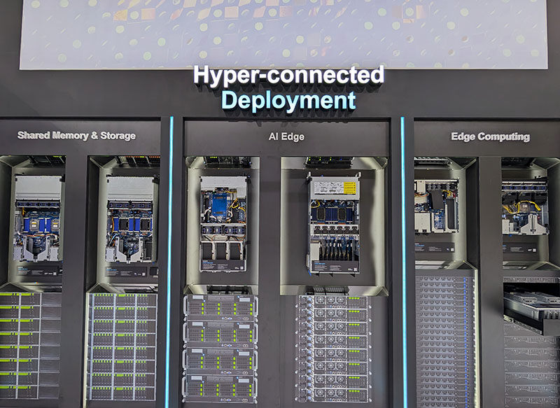 GigabyteAl MWC, GIGABYTE presenta anche diversi server ottimizzati per l’edge, tra cui server per l’edge computing a standard EIA con CPU AMD e Intel, e il debutto di un nuovo server blade 3U. Questi server offrono opzioni di calcolo con diverse densità e architetture per soddisfare i diversi requisiti delle applicazioni edge, aiutando gli utenti a ridurre i costi di implementazione dell’AI e il consumo di energia, migliorando al contempo l’efficienza di calcolo.