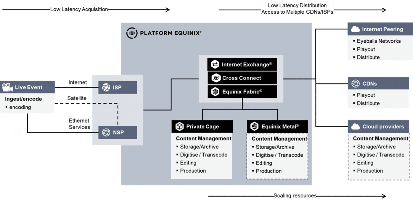 Platform Equinix può aiutare le piattaforme a sbloccare le soluzioni on-demand di cui hanno bisogno per essere pronte a tutto, sfruttando un’impronta di colocazione globale e il solido portafoglio di servizi di infrastruttura digitale. Infatti, gli stessi principi di progettazione che aiutano le aziende di Content & Digital Media a prosperare – infrastruttura distribuita e interconnessa nel digital edge – possono essere applicati a qualsiasi caso d’uso della customer experience che richiede una connettività a bassa latenza per gli utenti finali in molte località. Si pensi a offerte personalizzate per i clienti della vendita al dettaglio, a un migliore coinvolgimento dei pazienti nel settore sanitario e a servizi bancari digitali ottimizzati per utenti specifici.