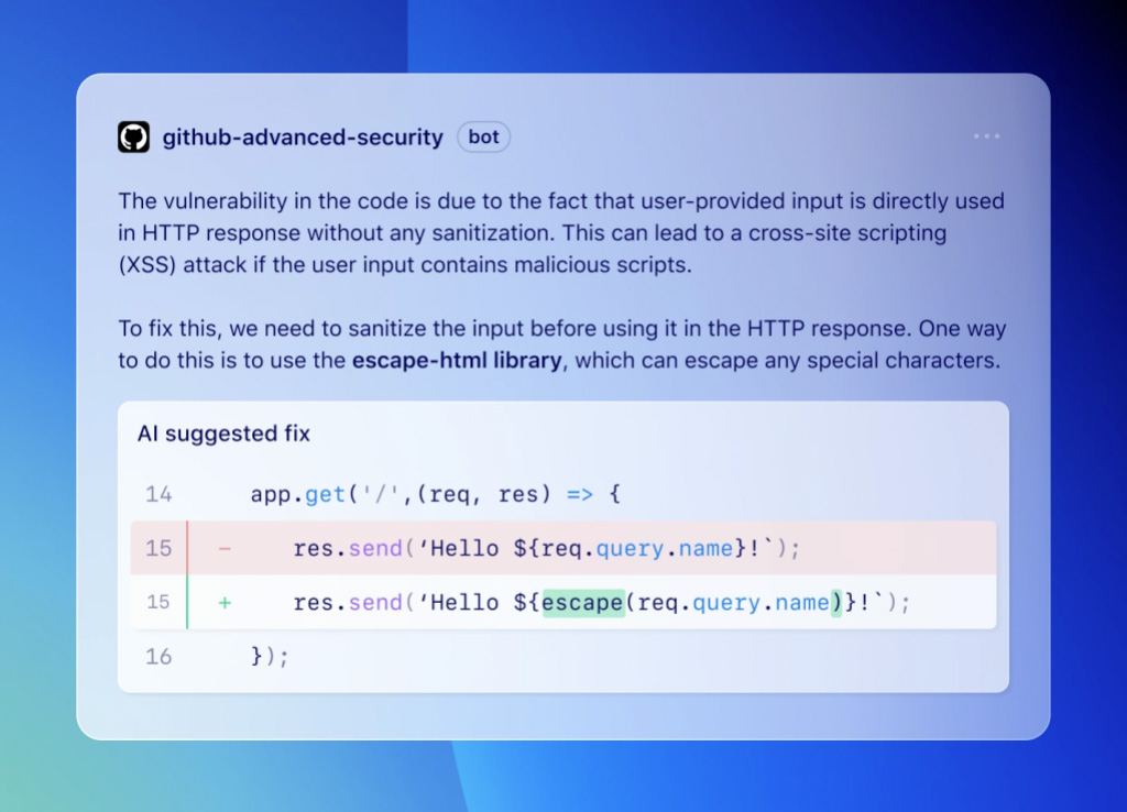GitHub ha annunciato la disponibilità in beta pubblica per tutti i clienti di GitHub Advanced Security della nuova funzione code scanning autofix.