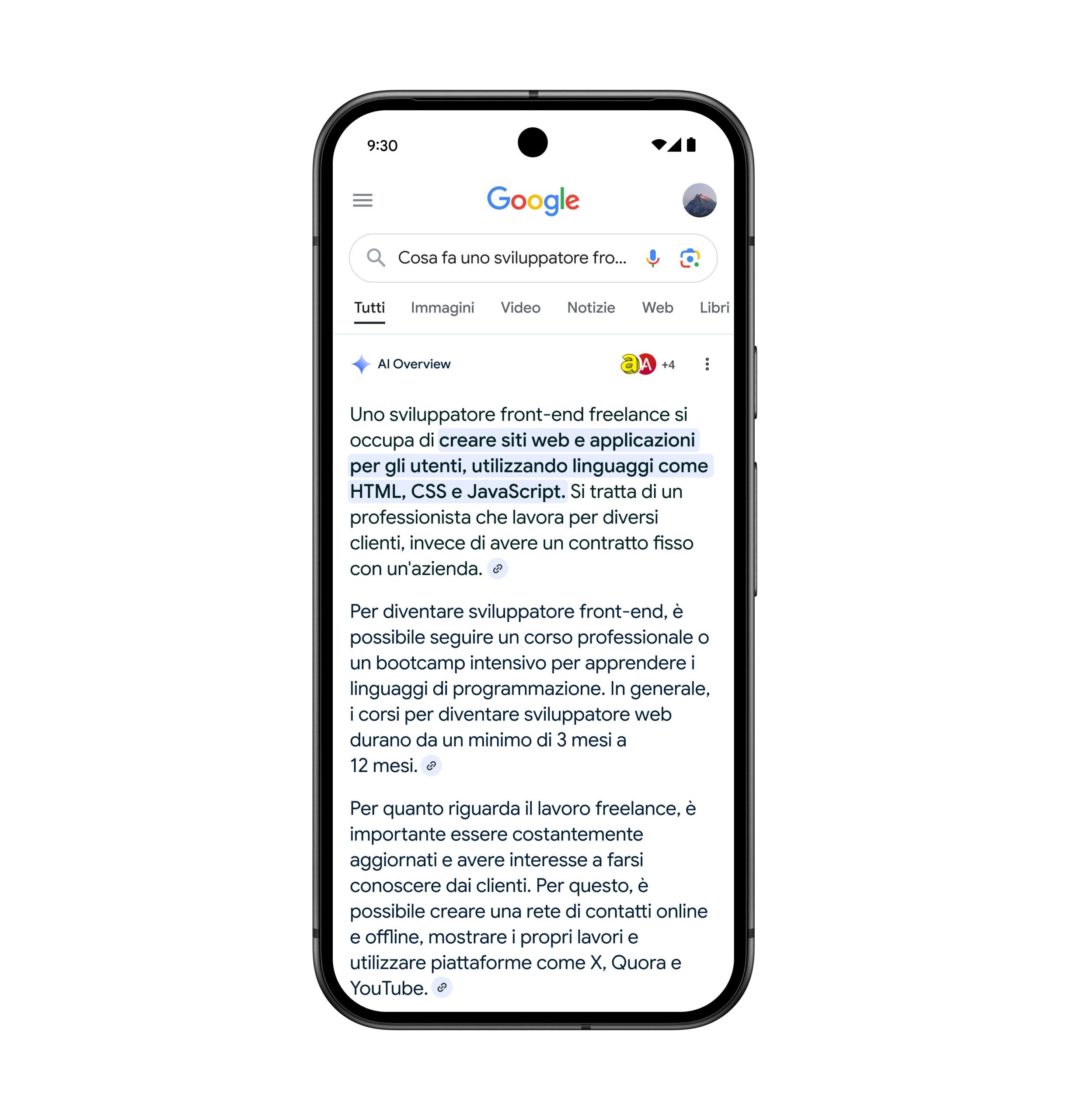 Grazie alla nuova funzionalità della Ricerca Google – AI Overview – è ora molto più semplice per gli utenti fare domande più elaborate, trovare le informazioni che cercano e scoprire siti web utili per rispondere alle loro esigenze.